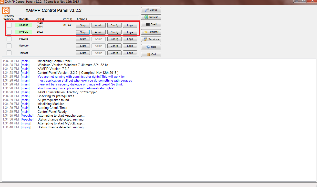 - Now go to open xampp control panel from your system and start Apache & MySql
